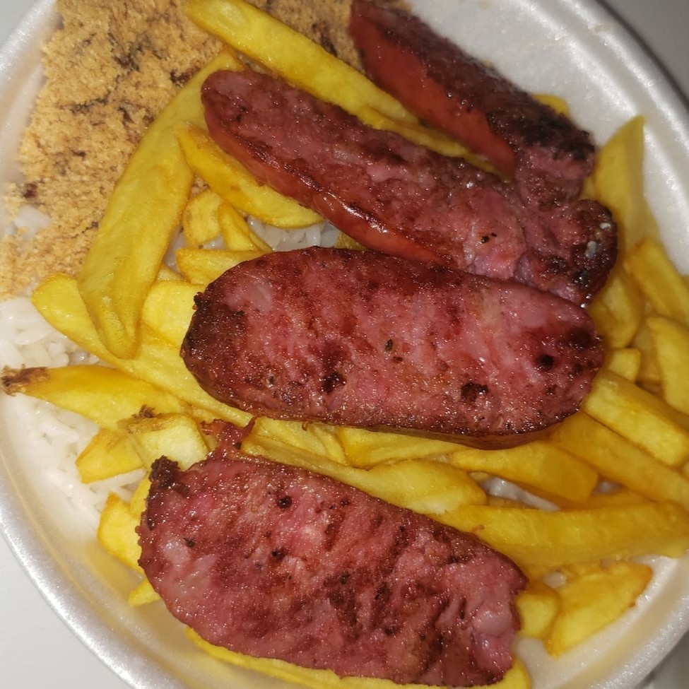 Arroz, feijão, batata frita, farofa especial e 2 linguiças Atenção Escolher O Tamanho! Itens Adicionais Estão Disponíveis