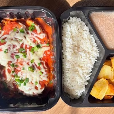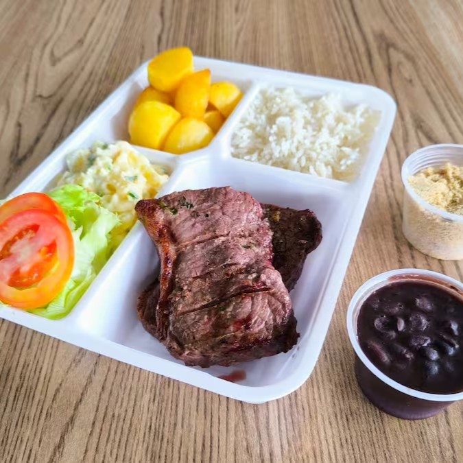 Acompanha: Arroz soltinho, Feijão de caldo(branco ou preto) macarrão, legumes ou verduras do Dia, batatas a francesa.