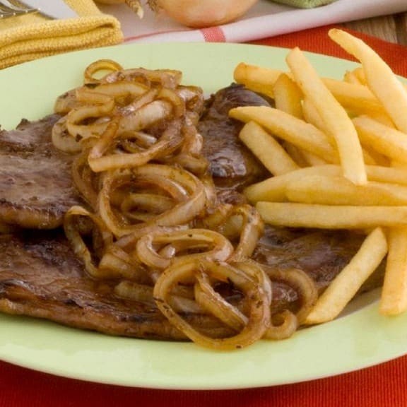 Bife Acebolado Suculento C Fritas ( Serve Muito Bem 1 Pessoa)