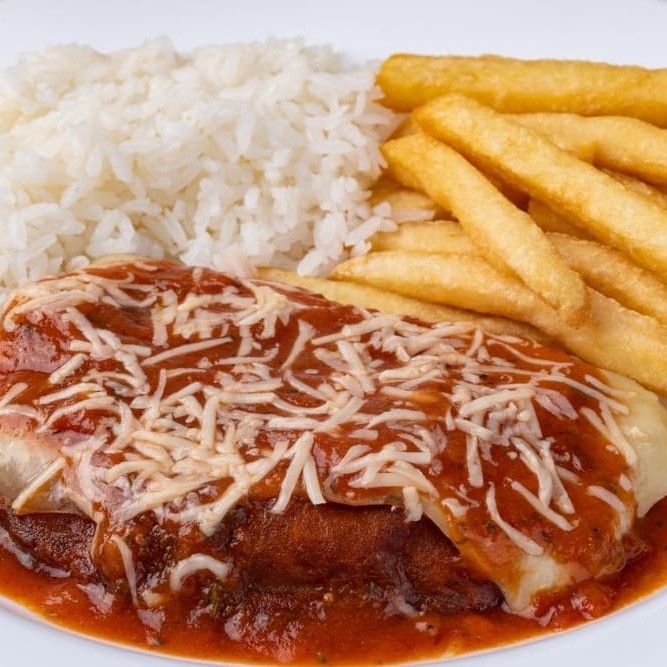 O melhor Da Sua Vida Filé de frango empanado em farinha especial regado por molho de tomates caseiro e coberto por queijo mussarela premium