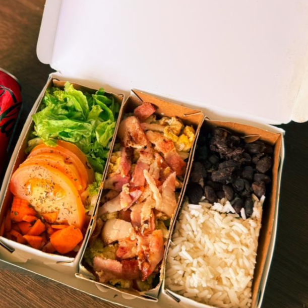 Acompanha frango ao sweet chilli, arroz branco, feijão, purê de batata e salada fresca. Refeição completa, bem servida e saborosa, perfeita para o dia a dia. 🍽️