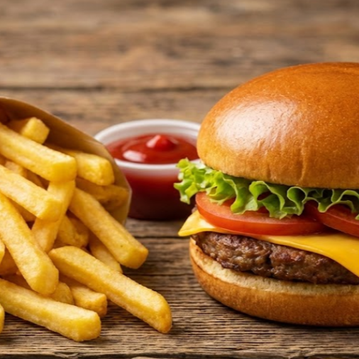 pão brioche, hamburguer 56g ind, queijo muçarela, tomate, alface, maionese, 100g de batata frita artesanal