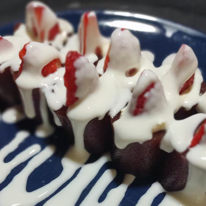 Nori, Arroz Japonês, Morango, Goiabada, Cream Cheese, Empanado Na Panko, E Leite Condensado