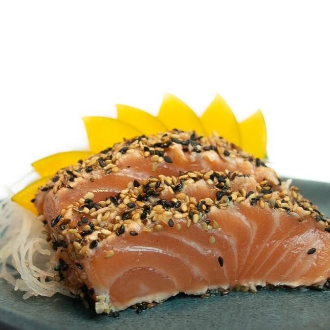 Lâminas De Salmão Selado No Gergelim.