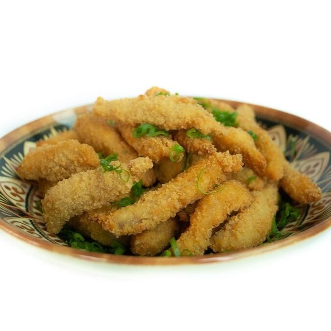Tiras De Peixe Branco, E Farinha Panko. Porção Média Aproximadamente 200g Porção Grande Aproximadamente 400g