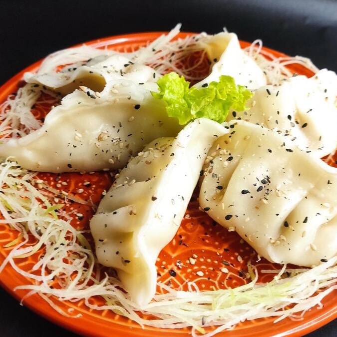 Pastelzinho Japonês Com Carne Suína, E Legumes. Preparados no vapor