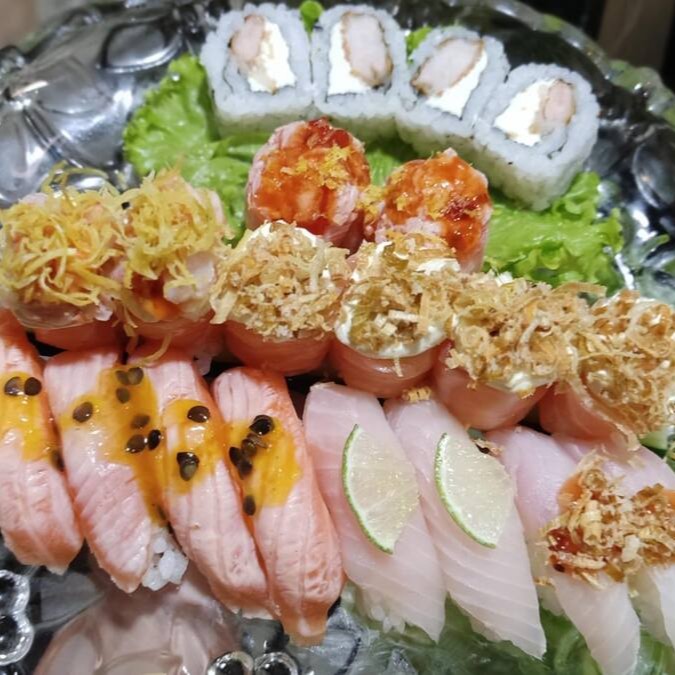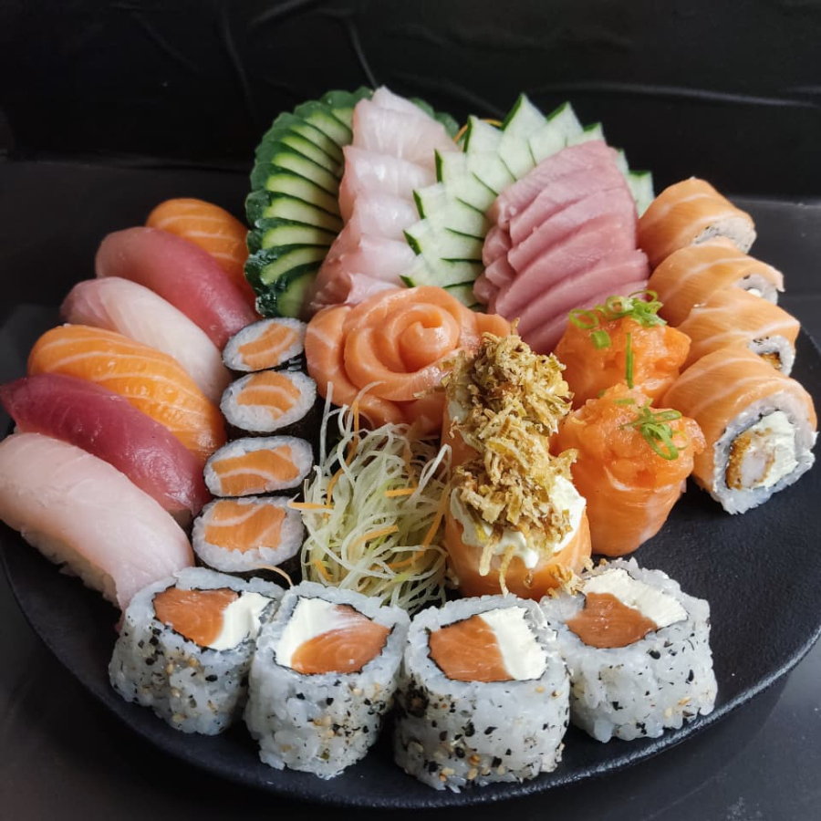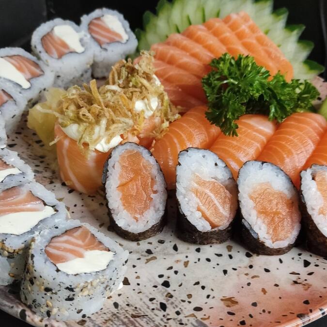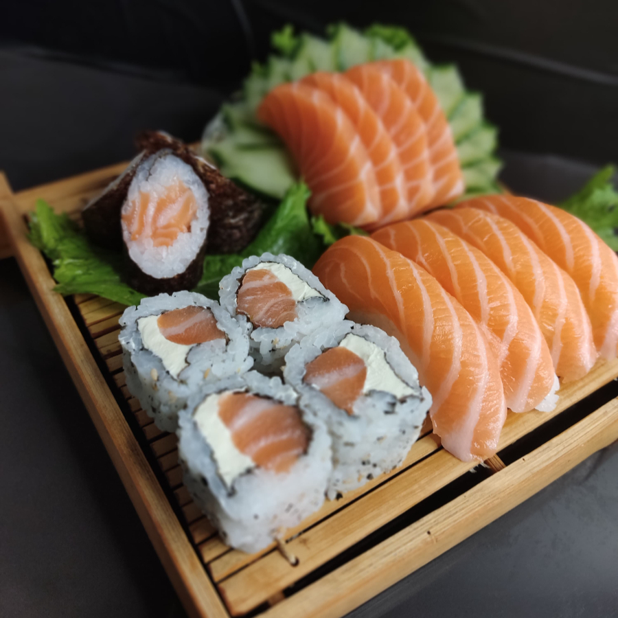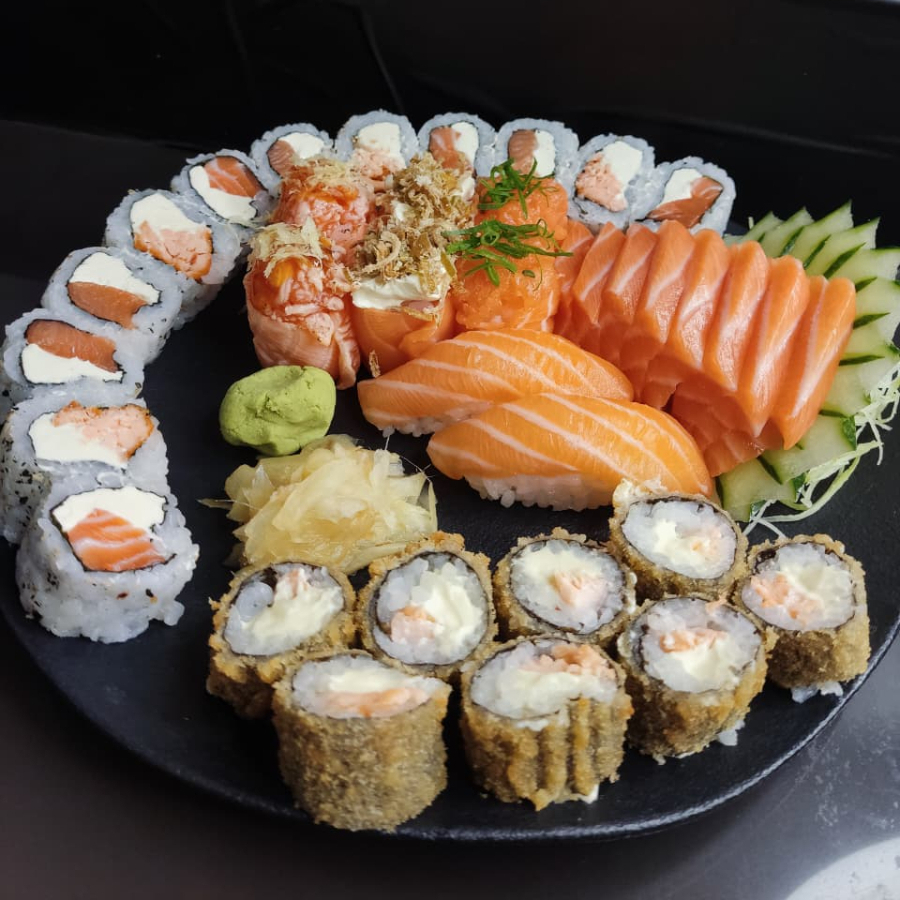 8 Sashimi De Salmão, 8 Uramaki Filadelfia, 2 Nigiri De Salmão, 2 Joe Poró , 2 Joe Salmão, 2 Joe Gentei, 4 Uramaki Salmão Grelhado, 8 Hot Filadelfia.