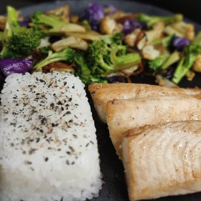 Peixe Branco Grelhad0, Legumes Salteados No Shoyu, E Na Manteiga. Tilapia (140g)