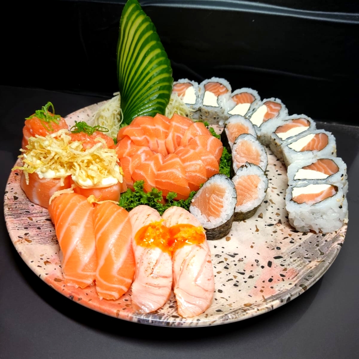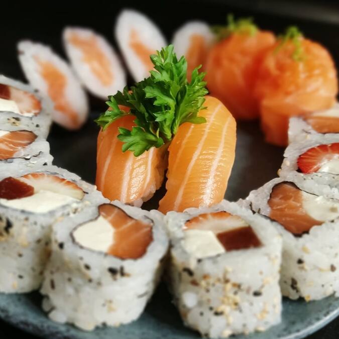 4 Uramaki Filadelfia, 2 Joe Salmão , 2 Niguiri De Salmão, 4 Sashimi De Salmão, 4 Uramaki Romeu E Julieta E 4 Hot Filadelfia