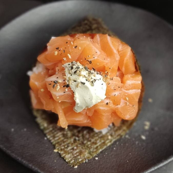 Alga,arroz, salmão e gergerlim