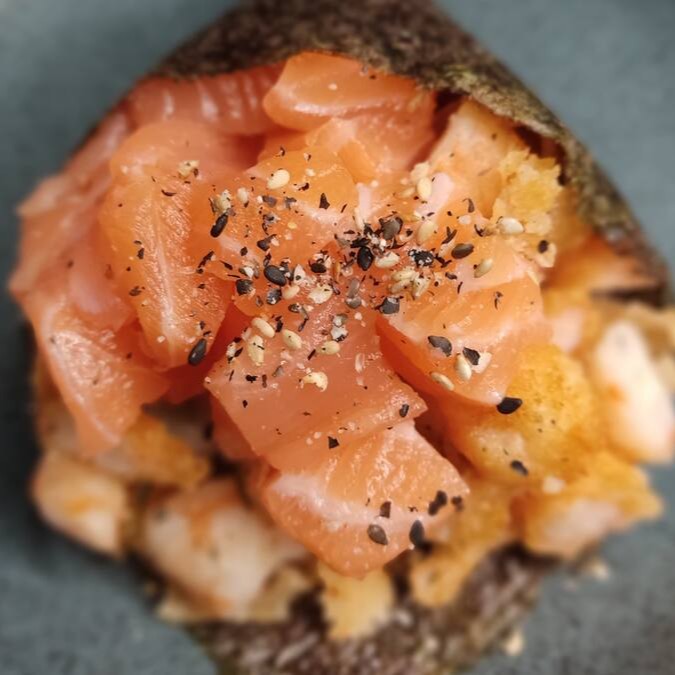 Temaki em dobro de salmão