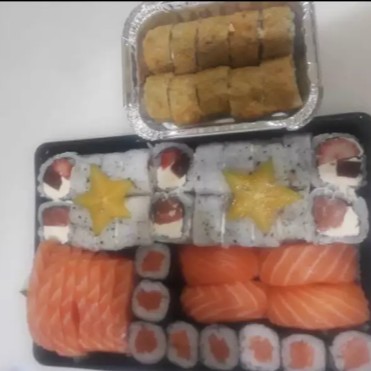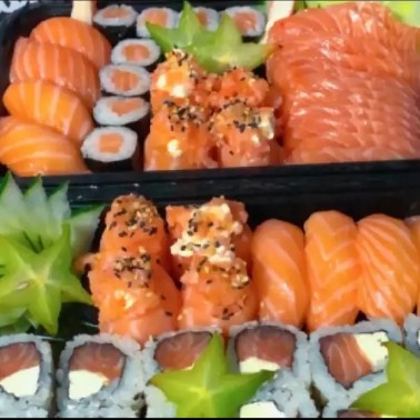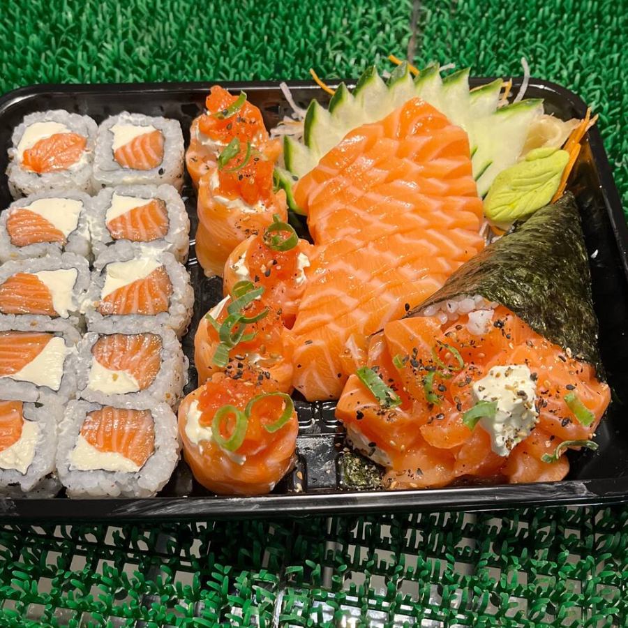 8 sashimi salmão 8 hossomaki salmão 4 niguiri salmão 10 uramaki Filadélfia 10 uramaki Romeu e Julieta 10 hot filadeldi