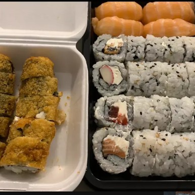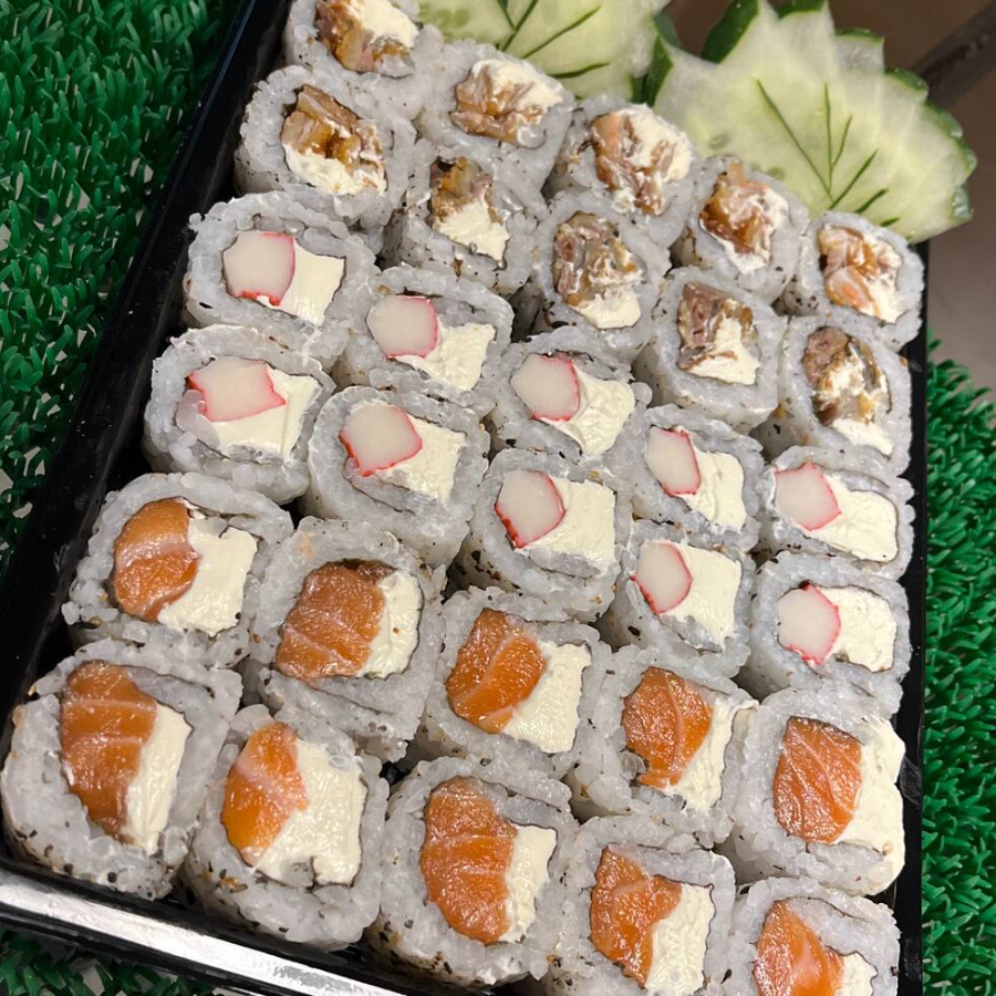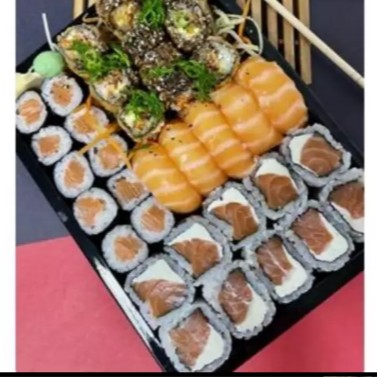 10 uramaki Filadélfia 10 hassomaki salmão 5 niguiri salmão 10 hot filadel