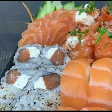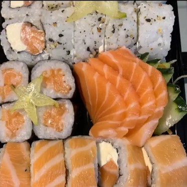 12 sashimi salmão 8 niguiri salmão 8 hossomaki salmão 8 joe 12 uramaki Filadélfia 10 hot Filadélfia brinde