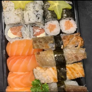 4 sashimi salmão 4 joe salmão 4 nigui salmão 10 uramaki diladek