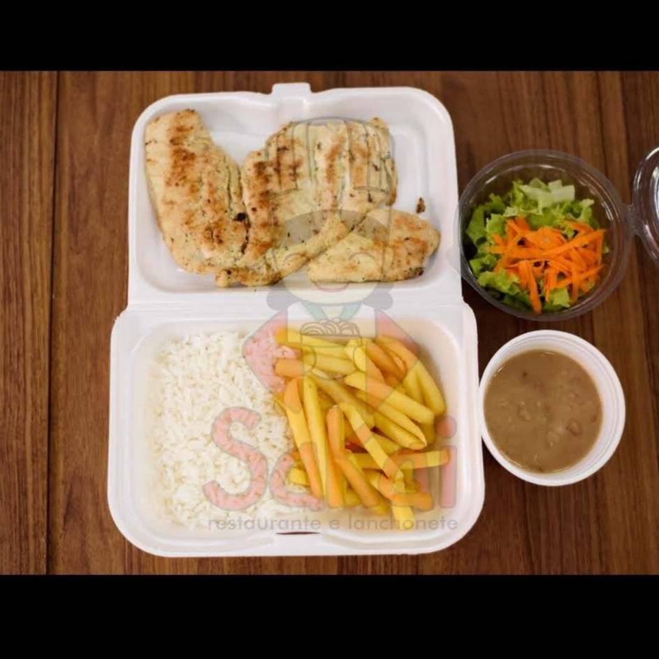 Arroz, feijão carioca ou Feijão Preto, batata frita, salada e filé de frango