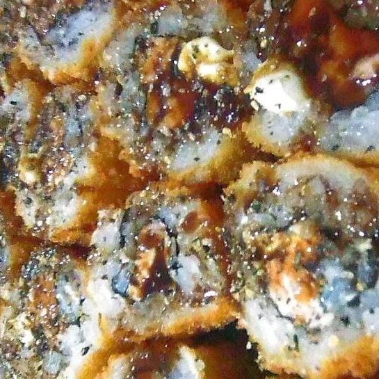 Frango cortado em pedaços, colocados na farinha panko e frito