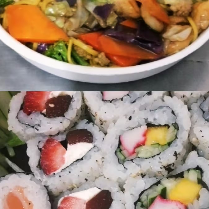 Nori, arroz, salmão, kani, camarão e cream cheese