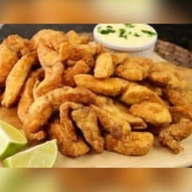 Tilápia empanada e frita, crocante por fora e macia por dentro, perfeita para petiscar.