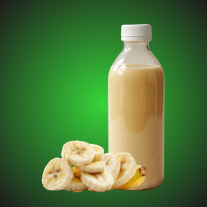 Bebida cremosa preparada com fruta e leite em pó integral. Ingredientes: Água mineral, banana e leite em pó integral (sem adição de açúcar). Não contém glúten. Cada porção tem aproximadamente 240 kcal, 35,3 g de carboidratos, 9 g de proteínas e 8 g de gorduras.