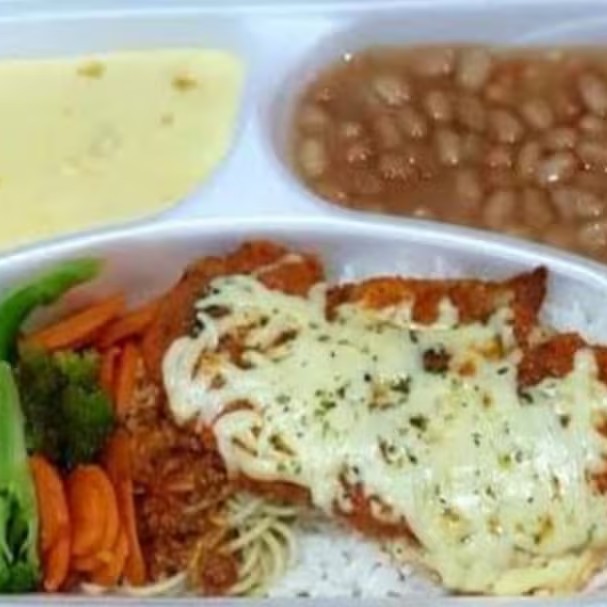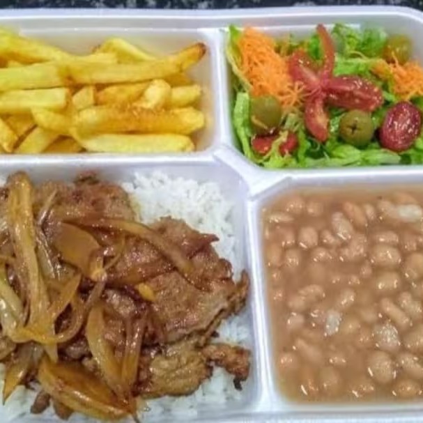 Contém - Arroz - Feijão - Macarrão alho e óleo - Refogado de legumes - Purê de batata -Salada