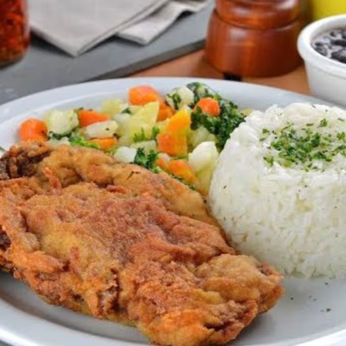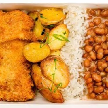 Contém - Arroz - Feijão - Macarrão alho e óleo - Refogado de legumes - Polenta frita - Ovo frito - Salada