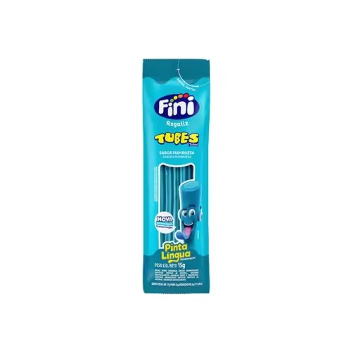 Bala Fini Tubes Pinta Lingua Framboesa Embalagem 15g