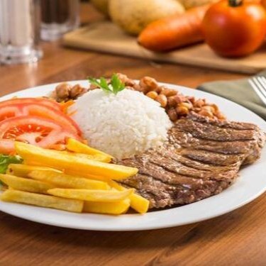 Marmita média com delicioso alcatra na chapa, arroz soltinho, feijão bem temperado, farofa crocante, e batata frita douradinha. Uma refeição completa e cheia de sabor! Acomapnha Sprite lata