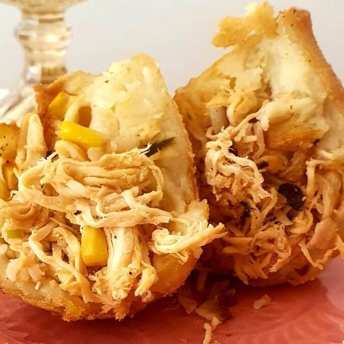 "A" Coxinha super crocante e recheada! Massa de batata salsa e recheio de frango bem temperadinho.