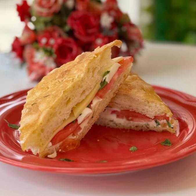 O clássico da cozinha italiana! Pão ciabatta, mussarela de búfala, tomate, azeite e manjericão preparados artesanalmente.
