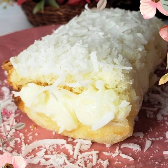 Massa de coco bemm molhadinha, recheio bem cremoso de compota de abacaxi e creme de colo. Geladinho entãoo... Tudo fica mais gostoso!