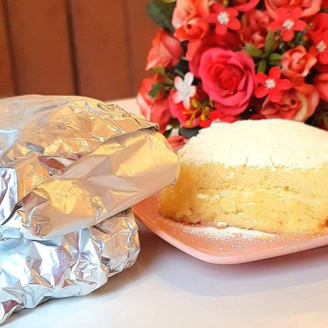 Bolo Super molhadinho e fofinho, recheado com creme belga de leite Ninho e finalizado com leite Ninho peneirado.