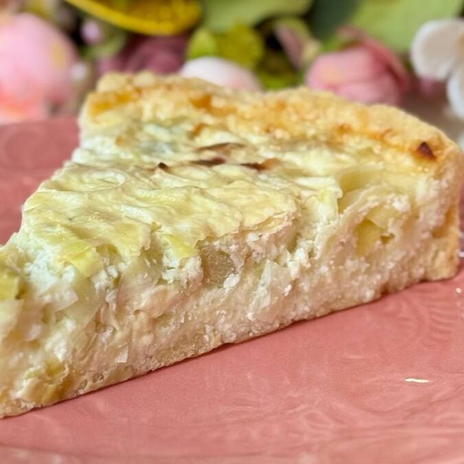 Deliciosa massa sablé que derrete na boca e recheio de alho poró refogado.