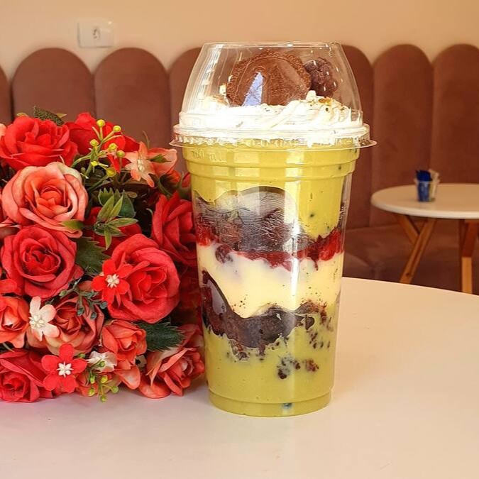 Felicidade é pouco nesse copo! Harmoniosa combinação de texturas e sabores :D Composto por um creme de pistache, pedacinhos de brownie, brigadeiro branco cremoso, geléia artesanal de frutas vermelhas e finalizado com chantilly e pistache tostado. Só Proveeeeem!