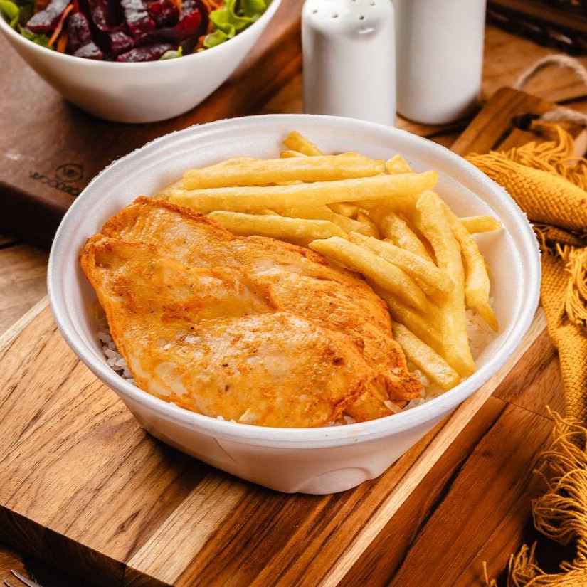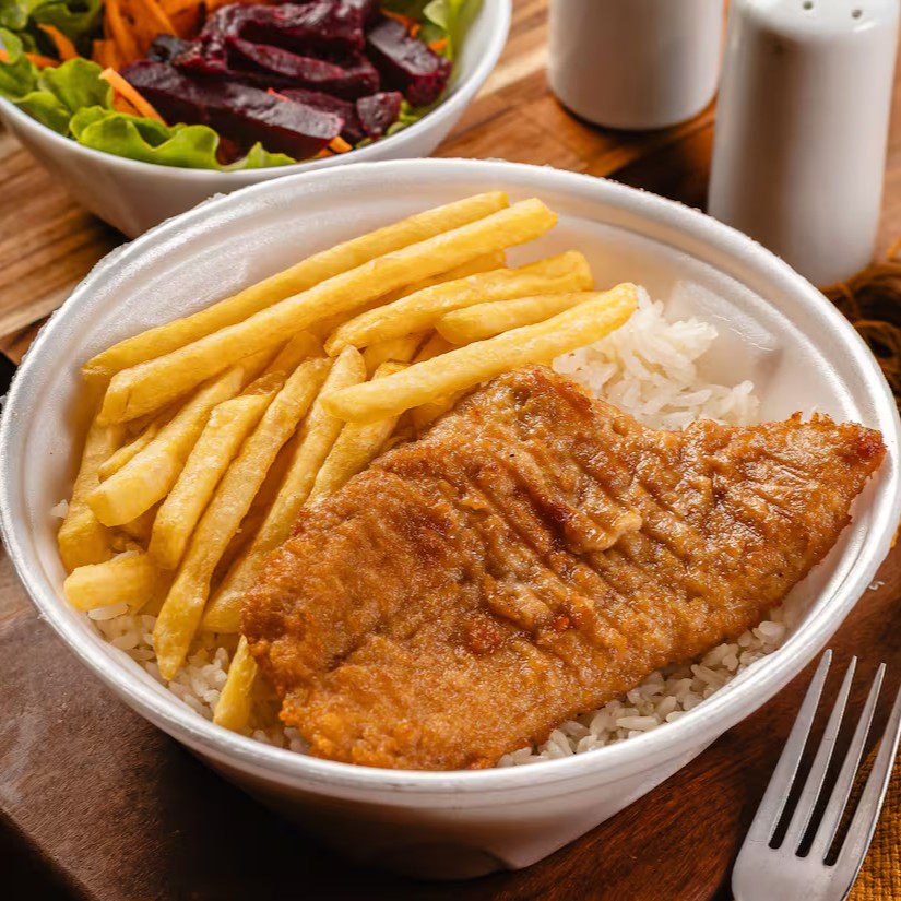 Peixe À Milanesa +arroz+feijao +batata Frita + Salada -g