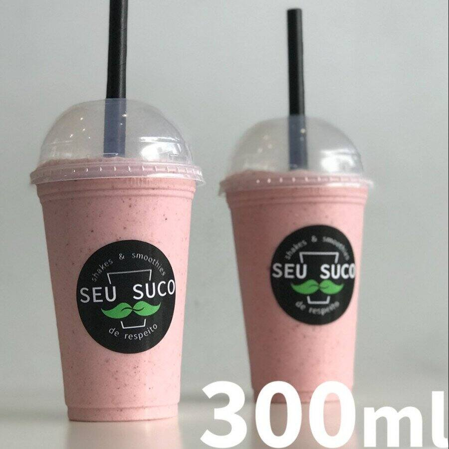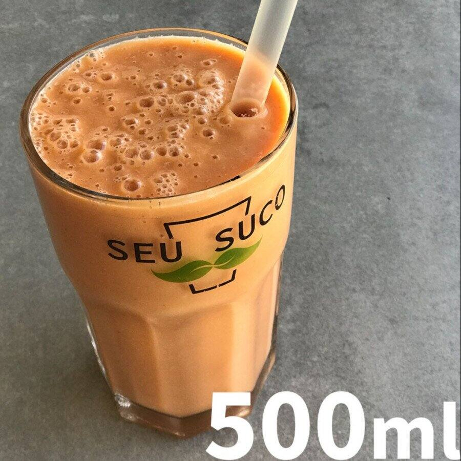 Delicioso smoothie com base de mamão e leite em pó e recheio de côco ralado, granola e leite Ninho. 500 ml