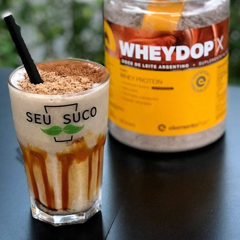 Shake proteico sabor torta banoffee com Whey Doce de Leite e bolachinha integral. 24g de proteína em um shakão de respeito!