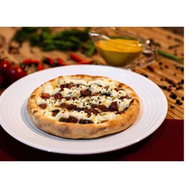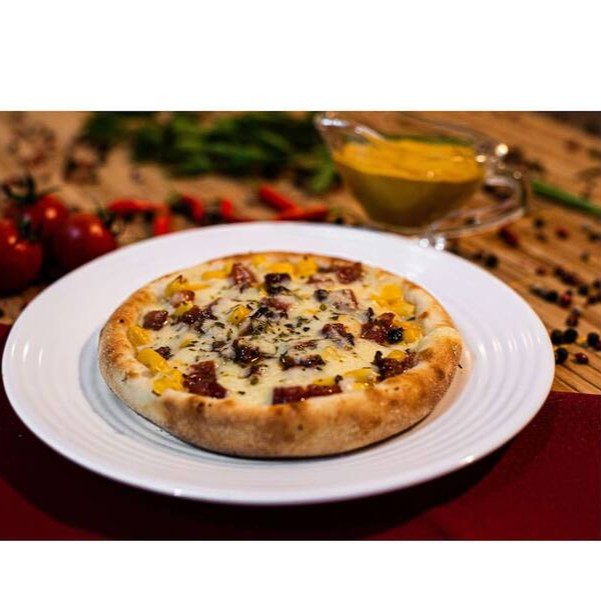 Mussarela, Calabresa, Tomate, Bacon, Cebola e requeijão