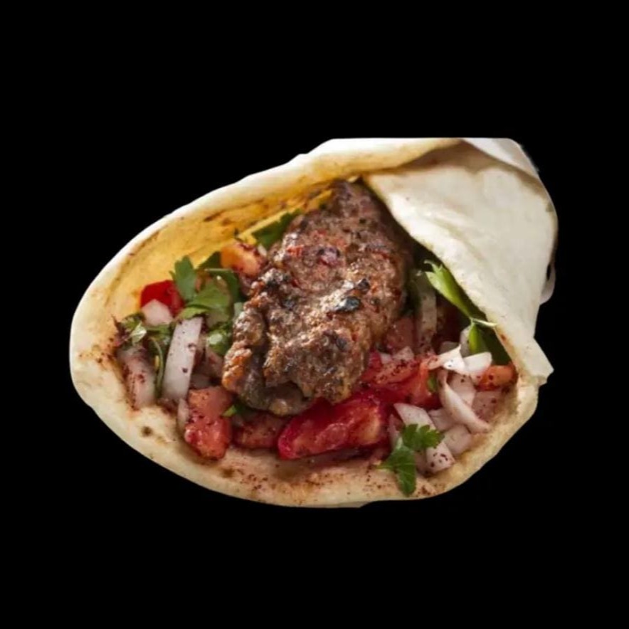 Escolha entre espeto de kafta ou frango, acompanhado de pão sírio e molho. Uma opção prática e deliciosa para qualquer momento.