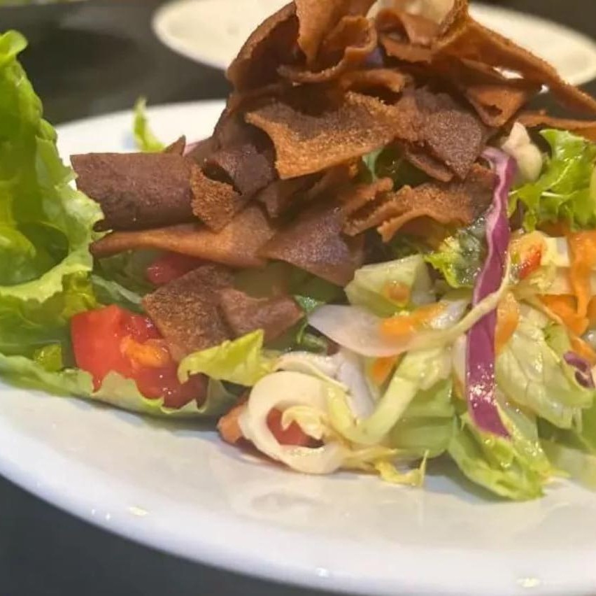 Salada tradicional com vegetais frescos e crocantes, temperada com especiarias autênticas.