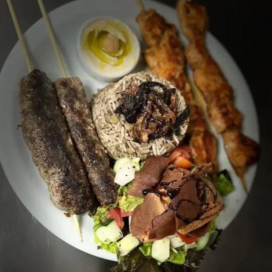 Uma combinação deliciosa e quente que inclui mjadara, 2 espetos de kafta, 2 espetos de frango, fatuche, homus e pão sírio. Perfeito para quem busca uma refeição completa e saborosa.