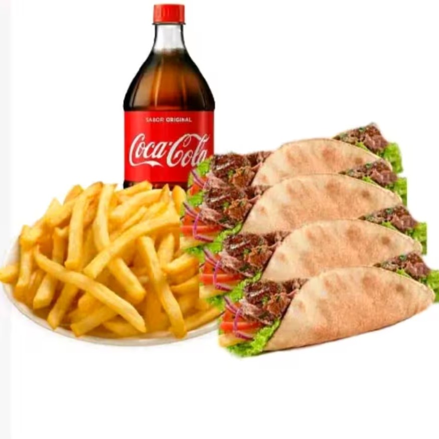 Combo 4 Shawarma Falafel+ 400g De Batata Fritas + Coca Refri 2 Litros