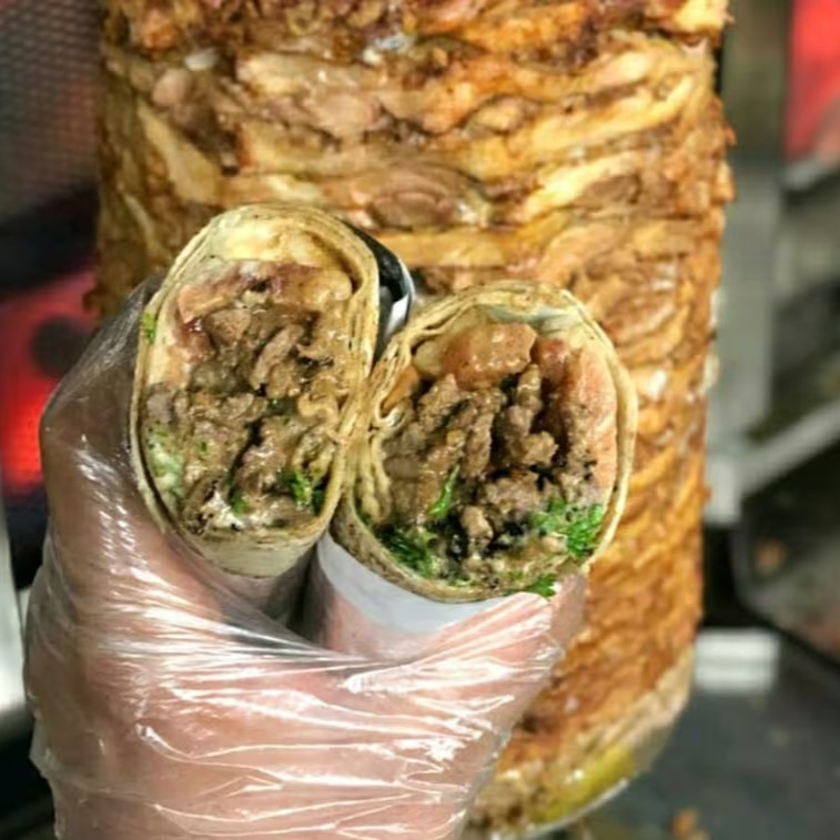 ( 2 ) Shawarma de carne contém, pão sírio, Tiras de carne de primeira, batata frita temperada com tempero tradicional, tomate, alfce, cebola e molho de alho.