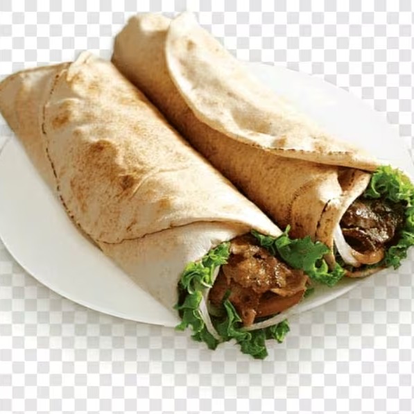 Pão sírio , molho de alho' tomate cebola,alface tiras,de carne salsinha batata fritas
