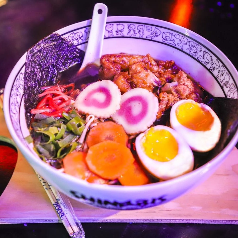 Adentre o mundo dos shinobi com o Shoyu Lamen Tori Paitan. Seu caldo tonkotsu, enriquecido com alga kombu, hondashi e shitake, revela um umami profundo, como os segredos ancestrais das aldeias ninjas. Os toppings, desde o narutomaki até o frango especial marinado no sakê, refletem a maestria dos verdadeiros mestres shinobi na arte da culinária. Com ovos ajitama, cebolinha fresca , tomate cereja, cenoura e nori crocante, cada garfada é uma aventura épica. Uma explosão de calor que ecoa o espírito indomável dos ninjas.