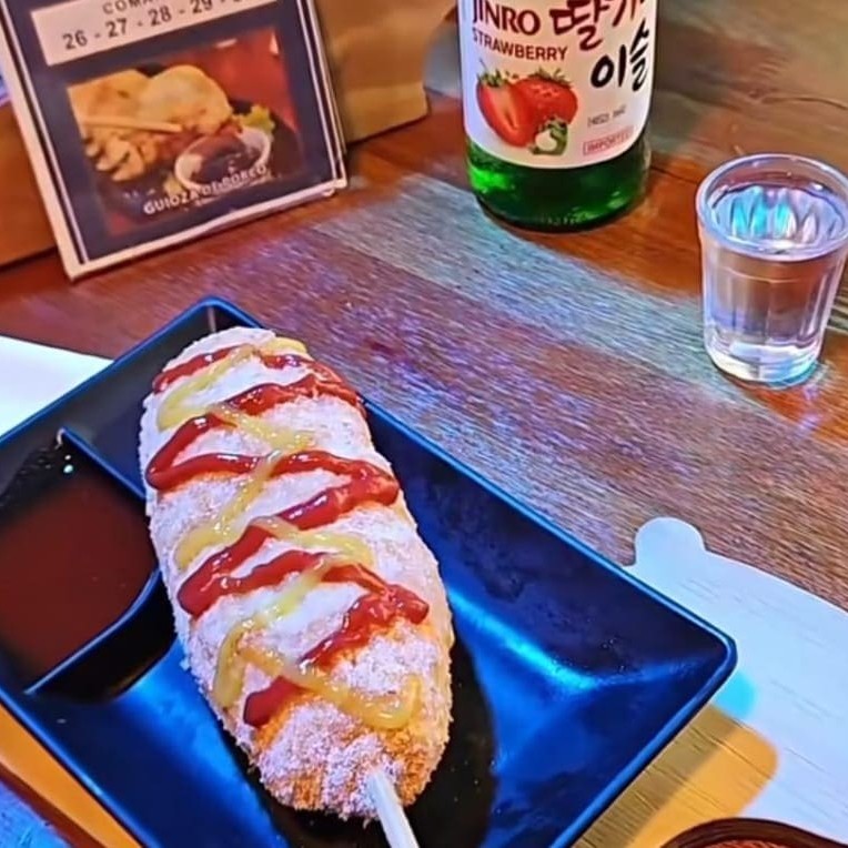 Corn Dog Coreano – Direto de Seoul para você! Quer sentir o gostinho das ruas da Coreia sem sair de casa? Então corre, porque esse Corn Dog é um sucesso e acaba rapidinho! Crocante por fora, macio por dentro e irresistível em cada mordida. Escolha seu estilo: Molho Verde – maionese artesanal com ervas fresquinhas (salsinha e cebolinha). Molho K-Pop – picância e sabor autêntico da pasta de pimenta coreana Gochujang. E ainda acompanha sachê de mostarda e ketchup pra completar a experiência! Atenção: item queridinho dos fãs de cultura pop. Peça agora antes que esgote e garanta o sabor de Seoul na sua mesa!