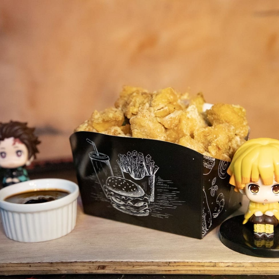 O Tonkatsu no Taizai - 200g é uma delícia verdadeiramente digna dos Sete Pecados Capitais! Saboreie suculentos filés de copa lombo, primorosamente empanados na crocante e irresistível farinha panko, uma iguaria que harmoniza vigor e sabor, remetendo à força do intrépido Meliodas. É acompanhado pelo delicioso e singular molho Gojo, que confere um toque especial ao prato, tão encantador quanto as aventuras de nossos valorosos heróis. Uma experiência gastronômica tão tentadora que até a própria Elizabeth não resistiria! Um triunfo culinário da categoria Izakaya.