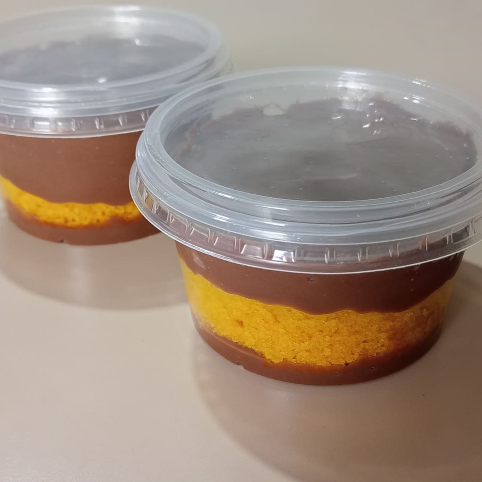Combo mini bolo Prestígio 100 gramas e bolo cenoura com chocolate 100gramas ------- tags -------- chocolate Prestígio coco cenoura bolo bolo de pote geladinho gourmet sobremesa doce salgado empadão refrigerante promoção cupom de desconto taxa grátis