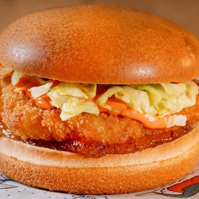 Filé de peixe branco empanado na farinha Panko, alface americana fatiada com mostarda e mel, bacon em cubos, cheddar cremoso e baconnese da casa, em um macio pão brioche.