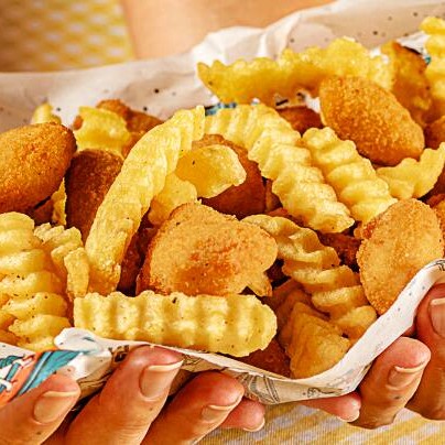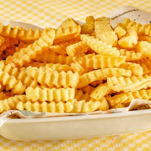Deliciosas batatas crinkle, quentinhas e crocantes, com o tempero especial Sirène e dois molhos à sua escolha. (500g*)